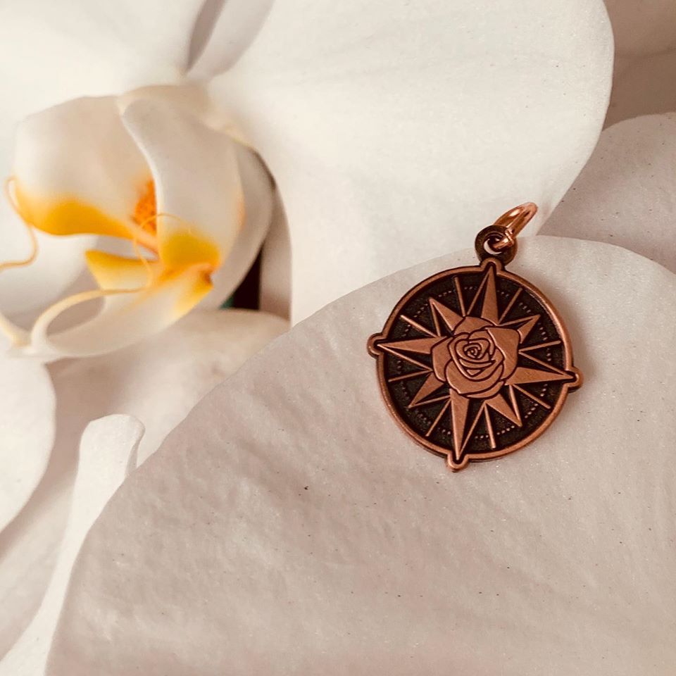Our little local charm features the Compass Rose History Experiences logo. Easily add to a bracelet or chain.